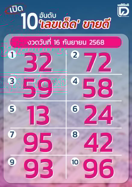 มาแล้ว 10 เลขเด็ด งวดวันที่ 16 ก.ย.68 เลข 32 ‘นายกฯคนใหม่’ ยังมาแรงมาก